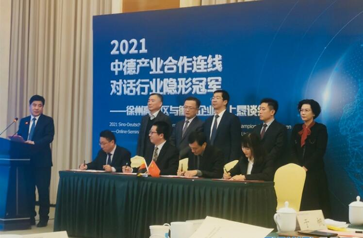 以“云”为媒、以“网”为桥,为全面打造国际新发展区域样板,加强徐州高新区对接德国行业内冠军企业,让更多德国企业了解徐州高新区的投资环境和发展优势,研讨疫情背景下,中德产业合作新常态。2021年2月,中德连线,对话隐形冠军 ——徐州高新区与德国企业恳谈会在线上举行。参加此次会议的有中国商务部投资促进事务局领导、徐州市政府及高新区领导,德国“隐形冠军之父”赫尔曼·西蒙,德国联邦经济发展与对外贸易委员会主席迈克尔·舒曼,徐工汽车、肯纳金属、精创电气、万达回转支承等15家中方企业代表,50家德国隐形冠军企业代表参加恳谈会。